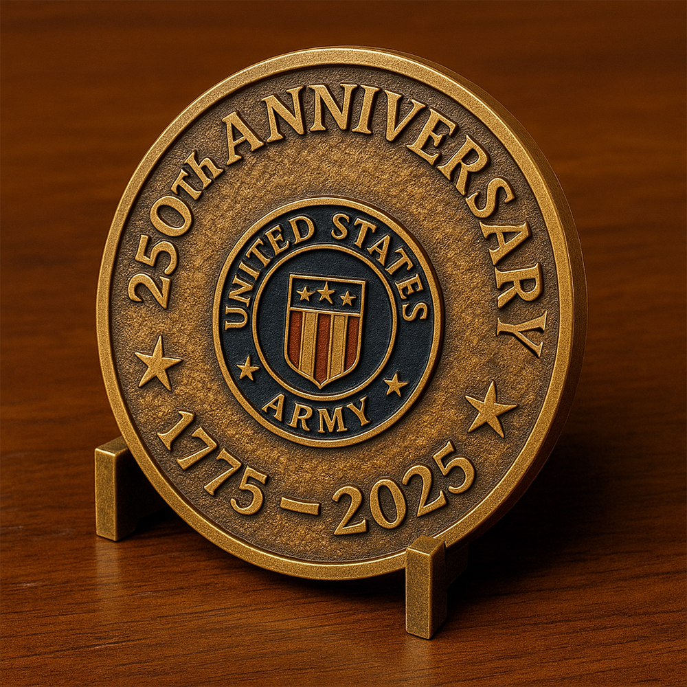 This officially inspired 250th Anniversary United States Army Coin celebrates a quarter-millennium of unparalleled service, sacrifice, and strength. From Bunker Hill to Baghdad, this commemorative piece captures the evolution of American military might, fused with rich symbolism and deeply emotional tribute.