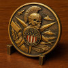 The front side boldly presents a battle-forged warrior skull wearing a modern-Spartan-style helmet, symbolizing the unbroken spirit of the American soldier through time. Surrounding this powerful emblem: